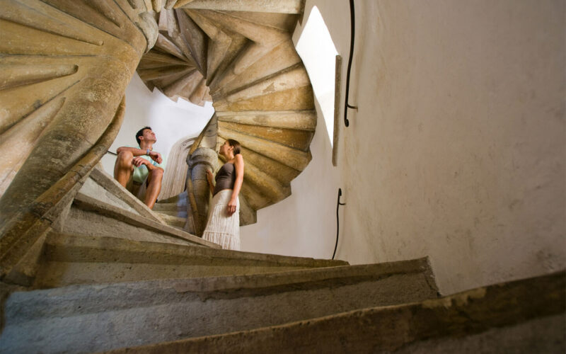 Die Grazer Burg mit Ihrer berühmten und schillernden Sandstein-Doppelwendeltreppe ist seit über 500 Jahren ein Zentrum der Macht und der Verwaltung. Die historischen Gebäude sind heute Teil und Sitz der steirischen Landesregierung. Teile der großen Anlage sind öffentlich zugänglich – darunter natürlich auch die legendäre „Busserltreppe“.